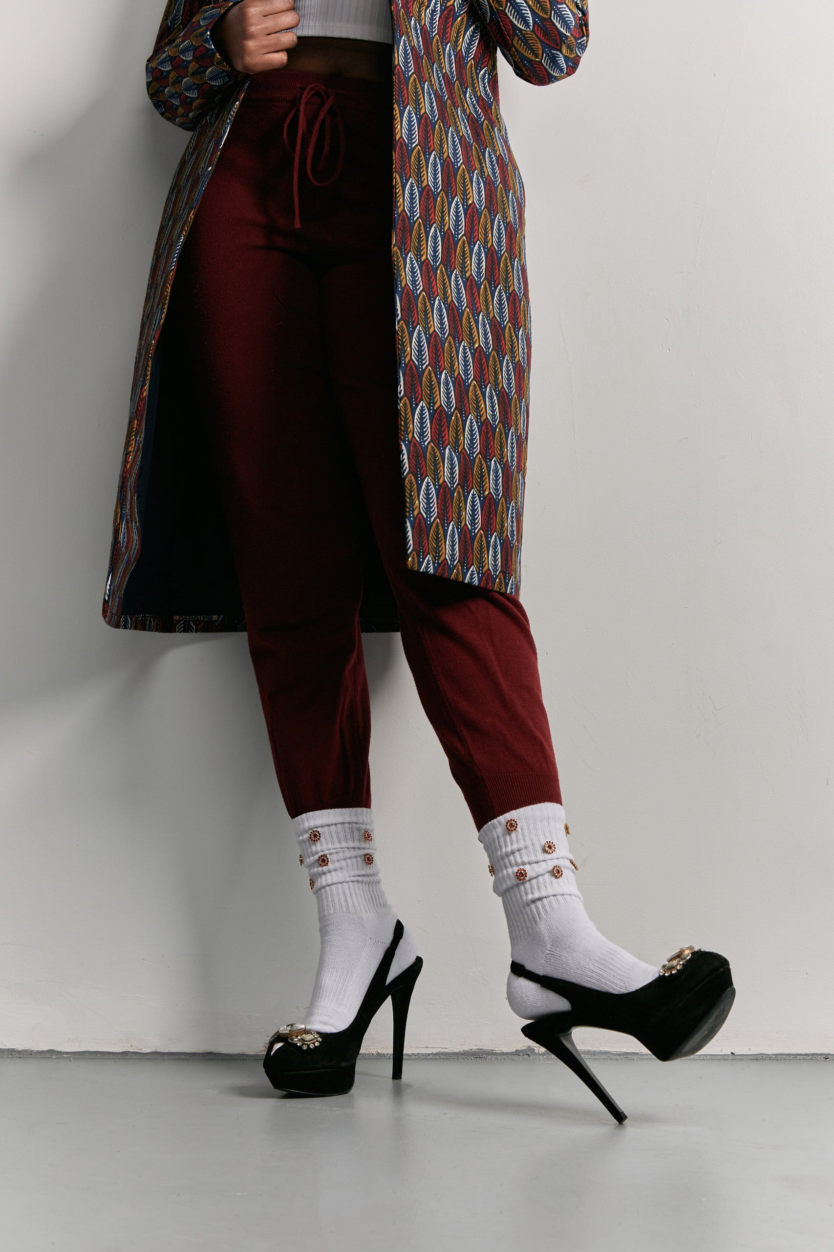 Add sparkling colours to every step. These shimmering jewel-encrusted socks are cozy and luxurious, simply yet beautifully details that make a statement.