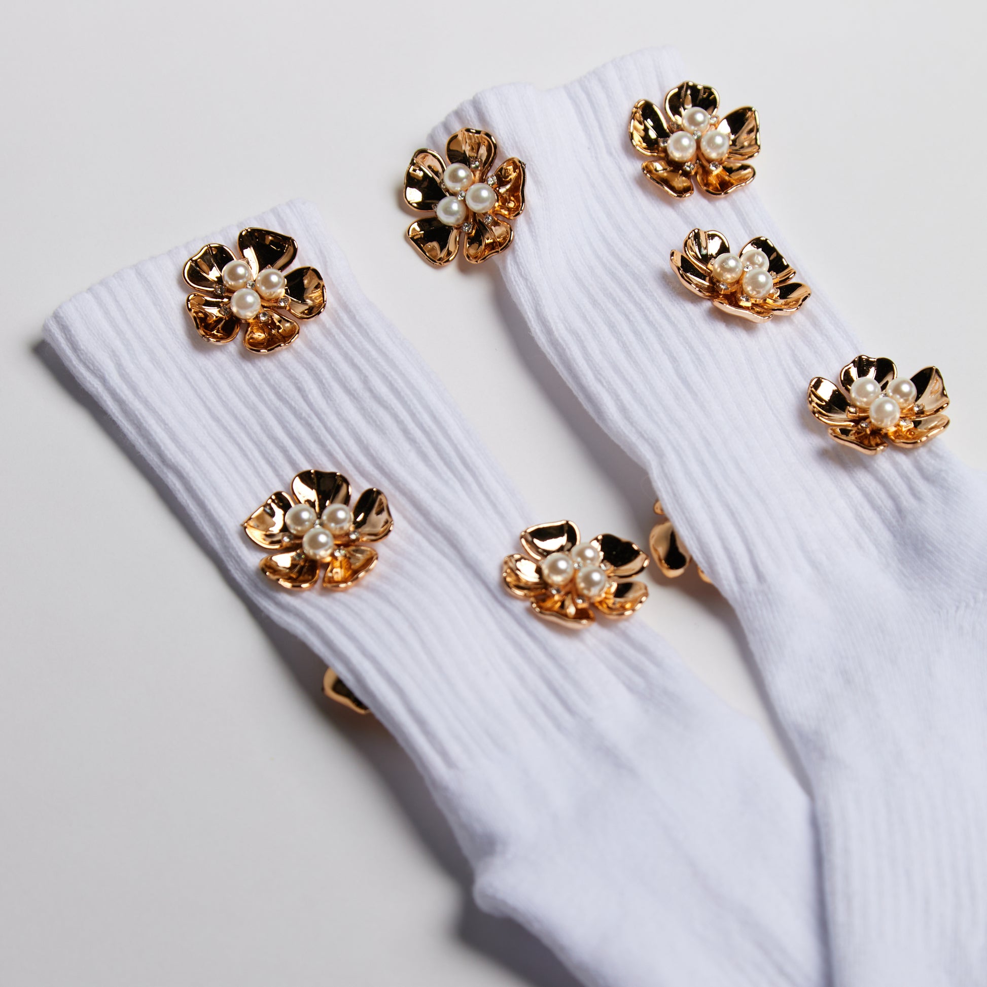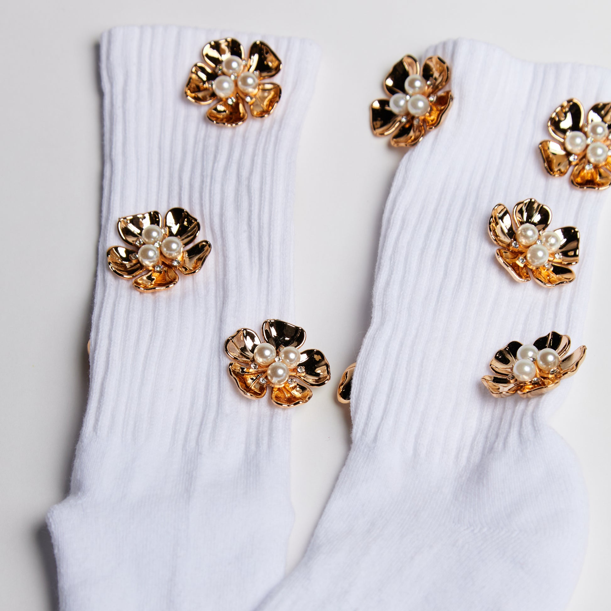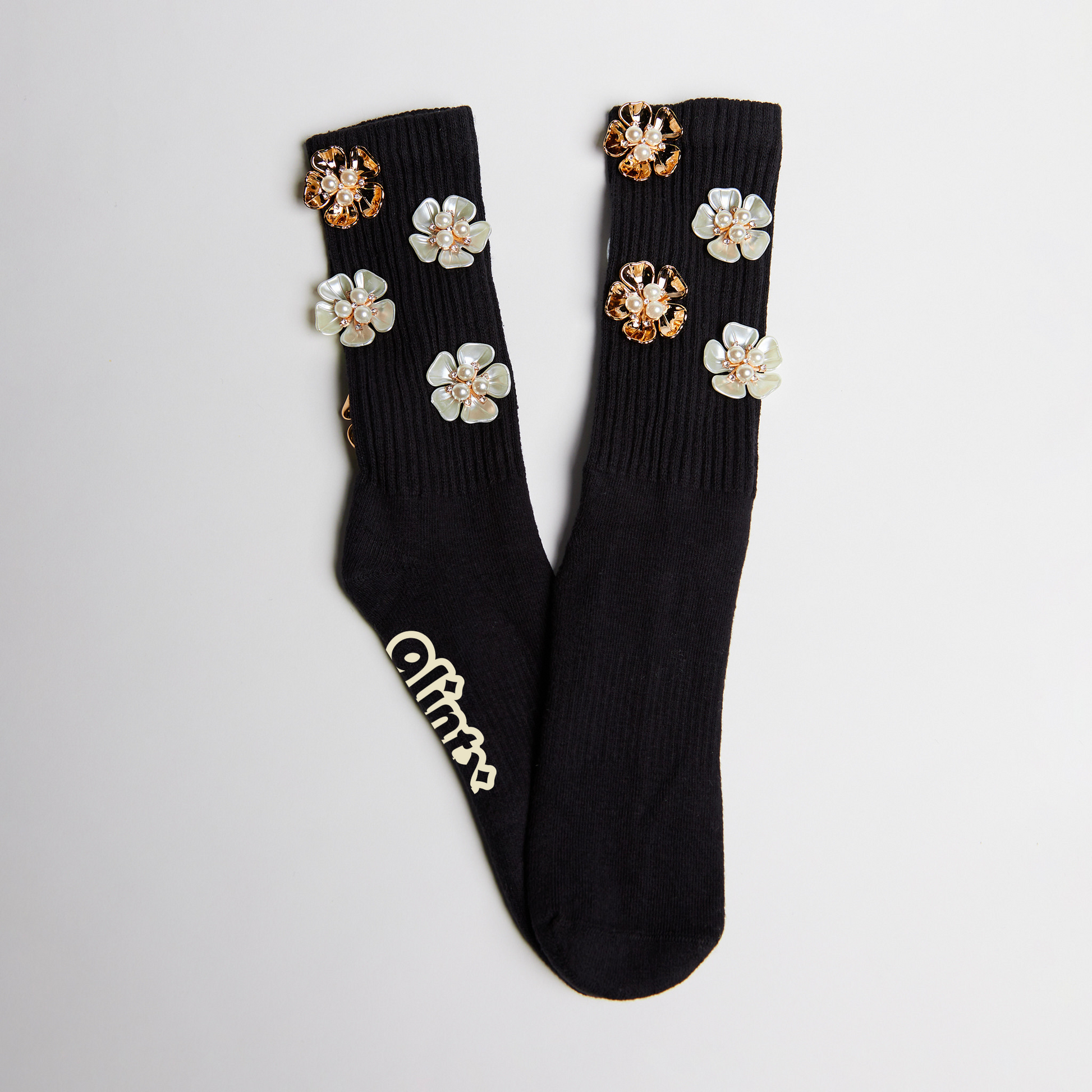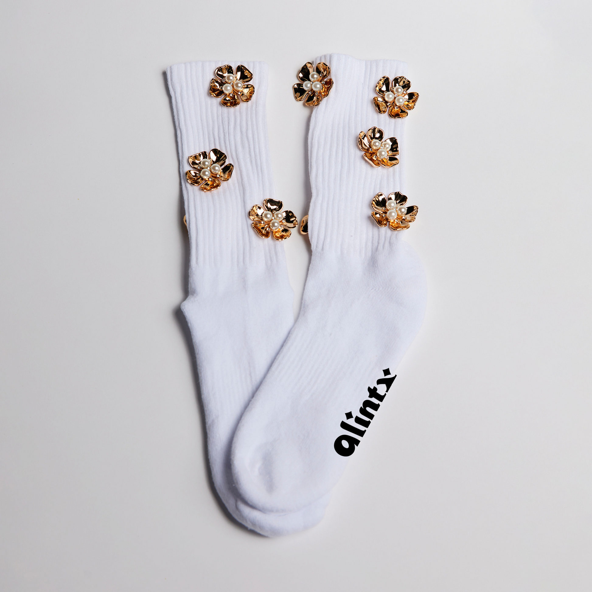 Our Signature athletic crew socks featuring a vibrant, eye-catching gold orchid flower motif that'll add a daring touch to your look.