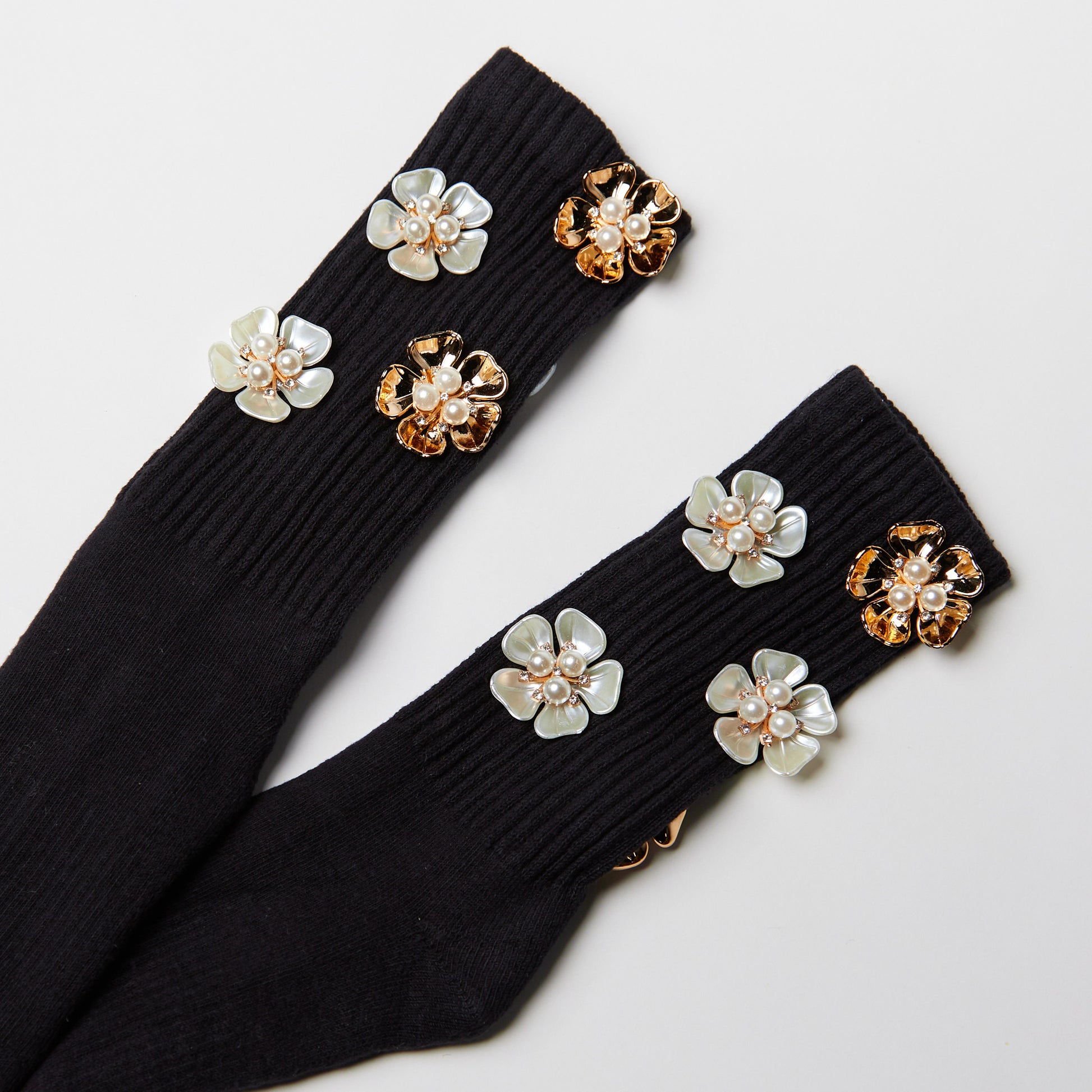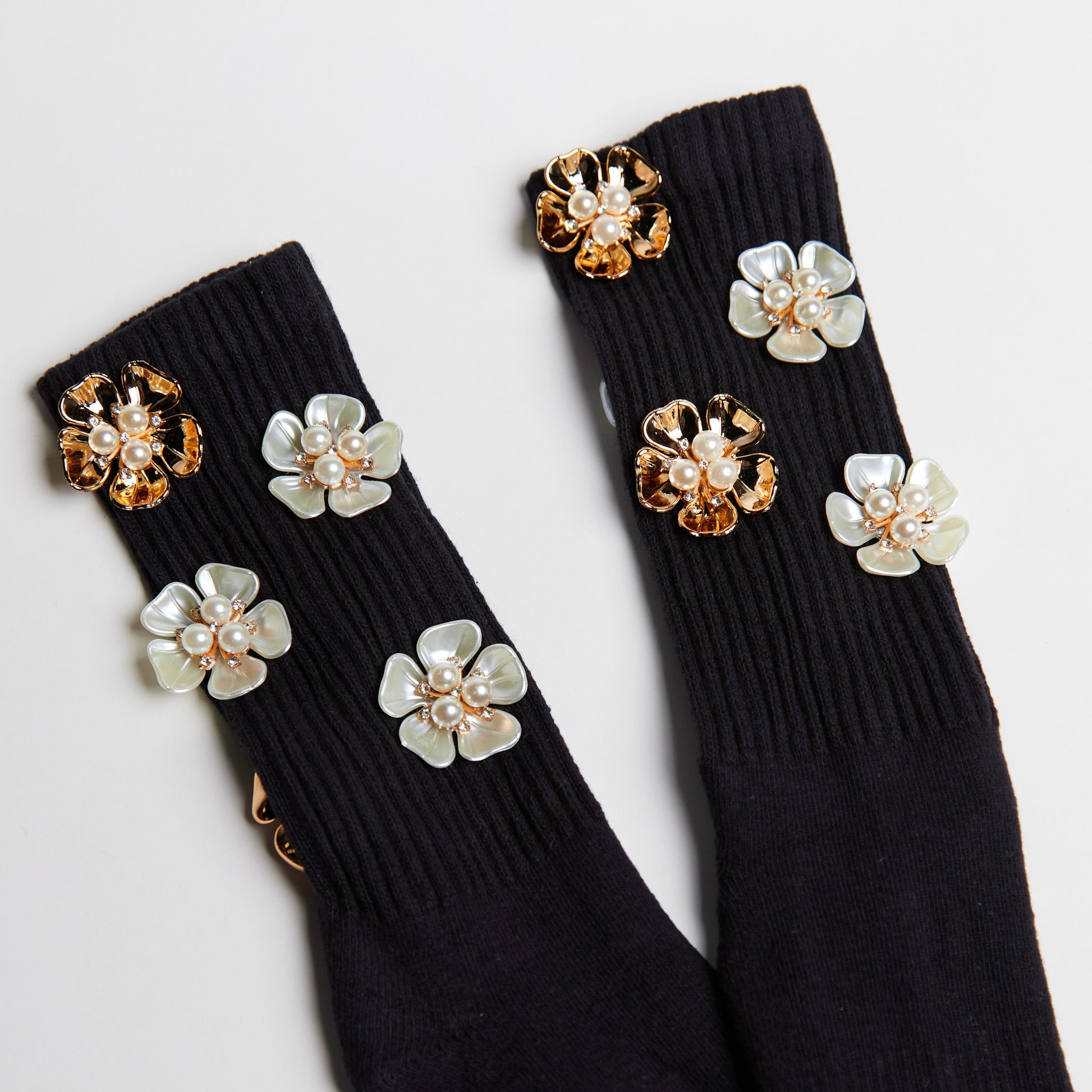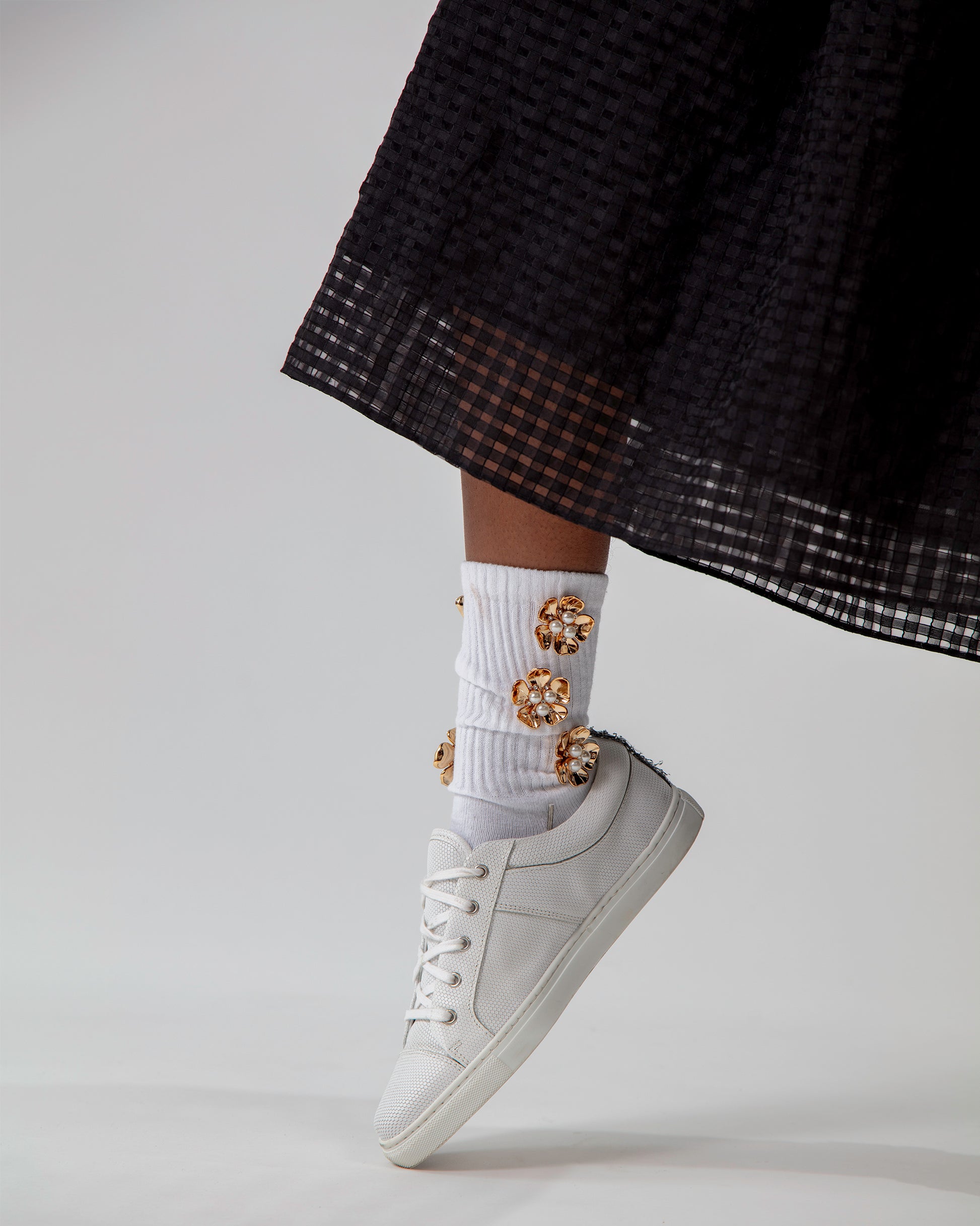 Our Signature athletic crew socks featuring a vibrant, eye-catching gold orchid flower motif that'll add a daring touch to your look.