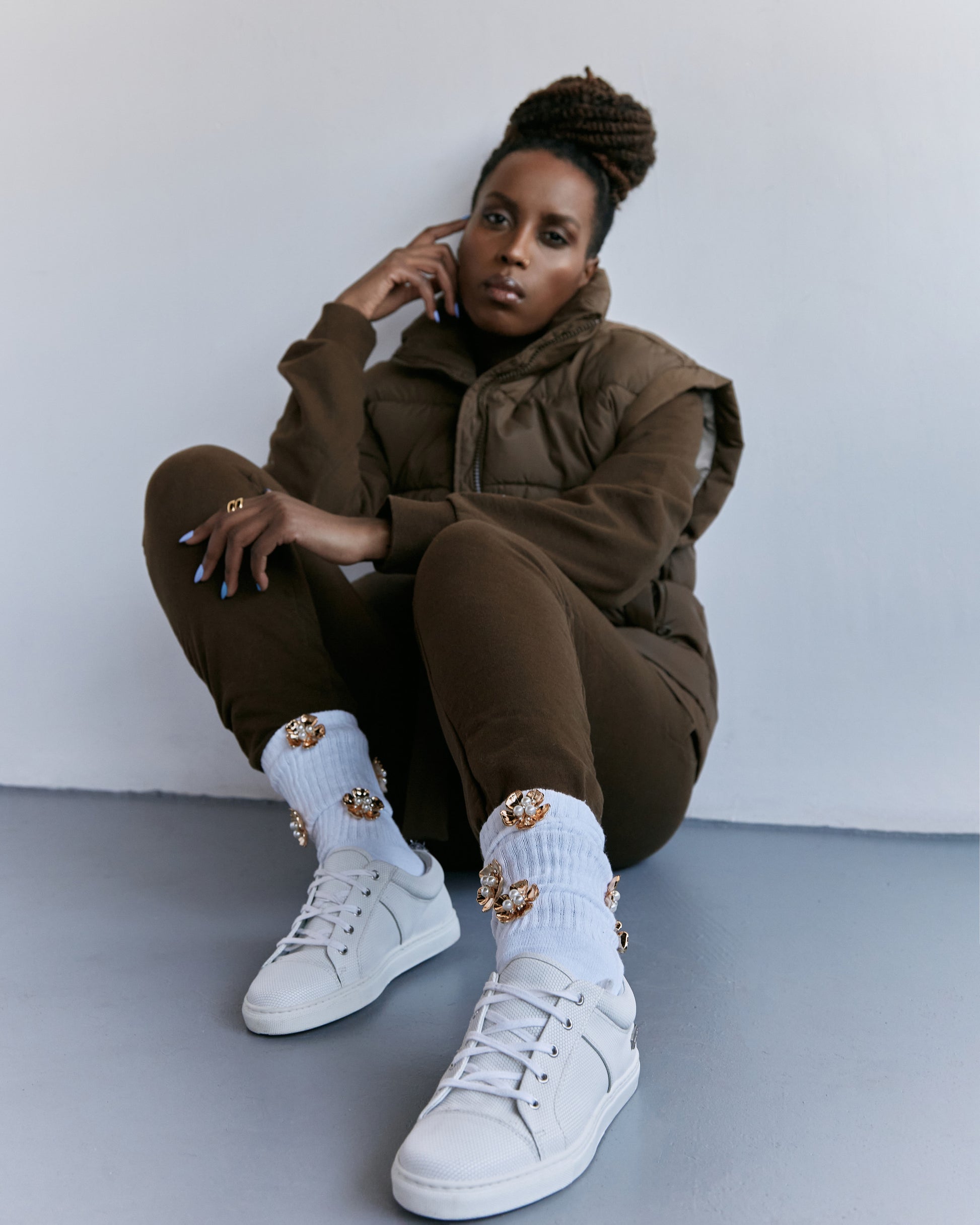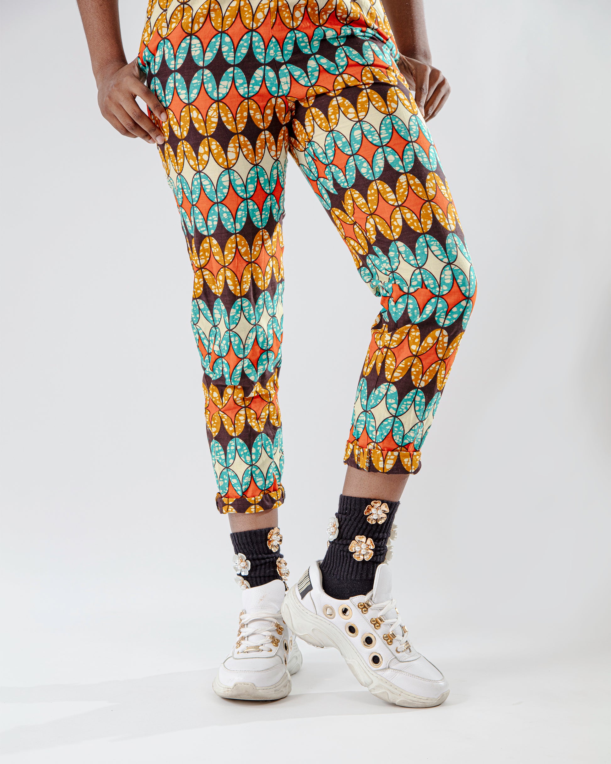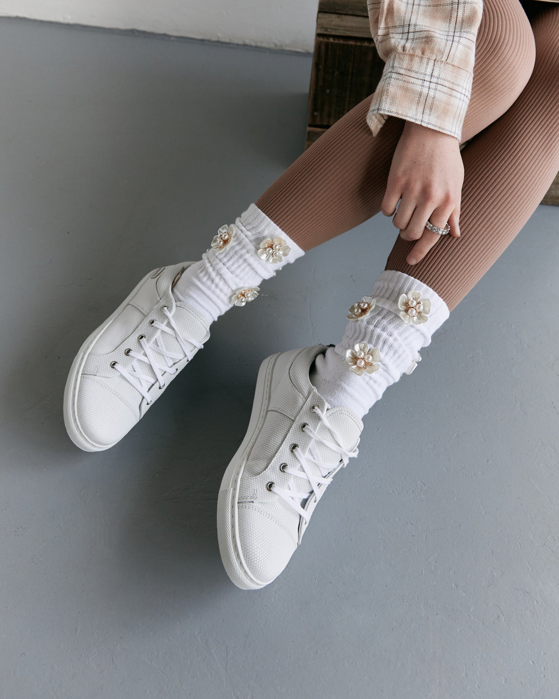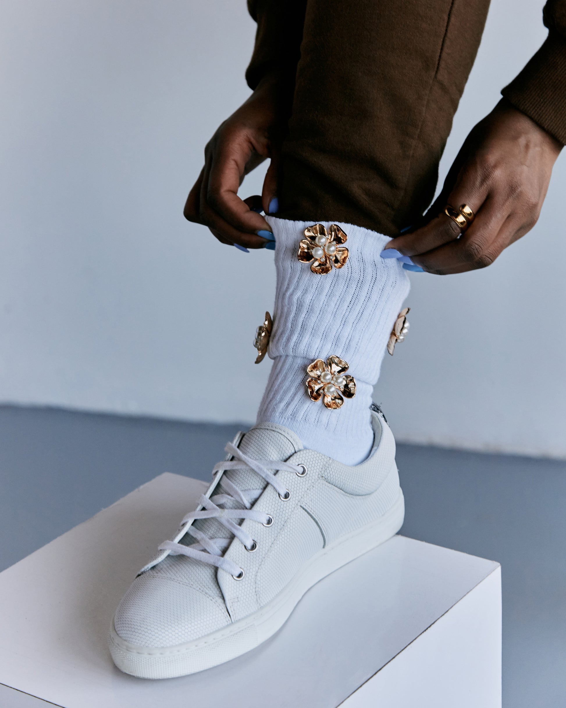 Our Signature athletic crew socks featuring a vibrant, eye-catching gold orchid flower motif that'll add a daring touch to your look.