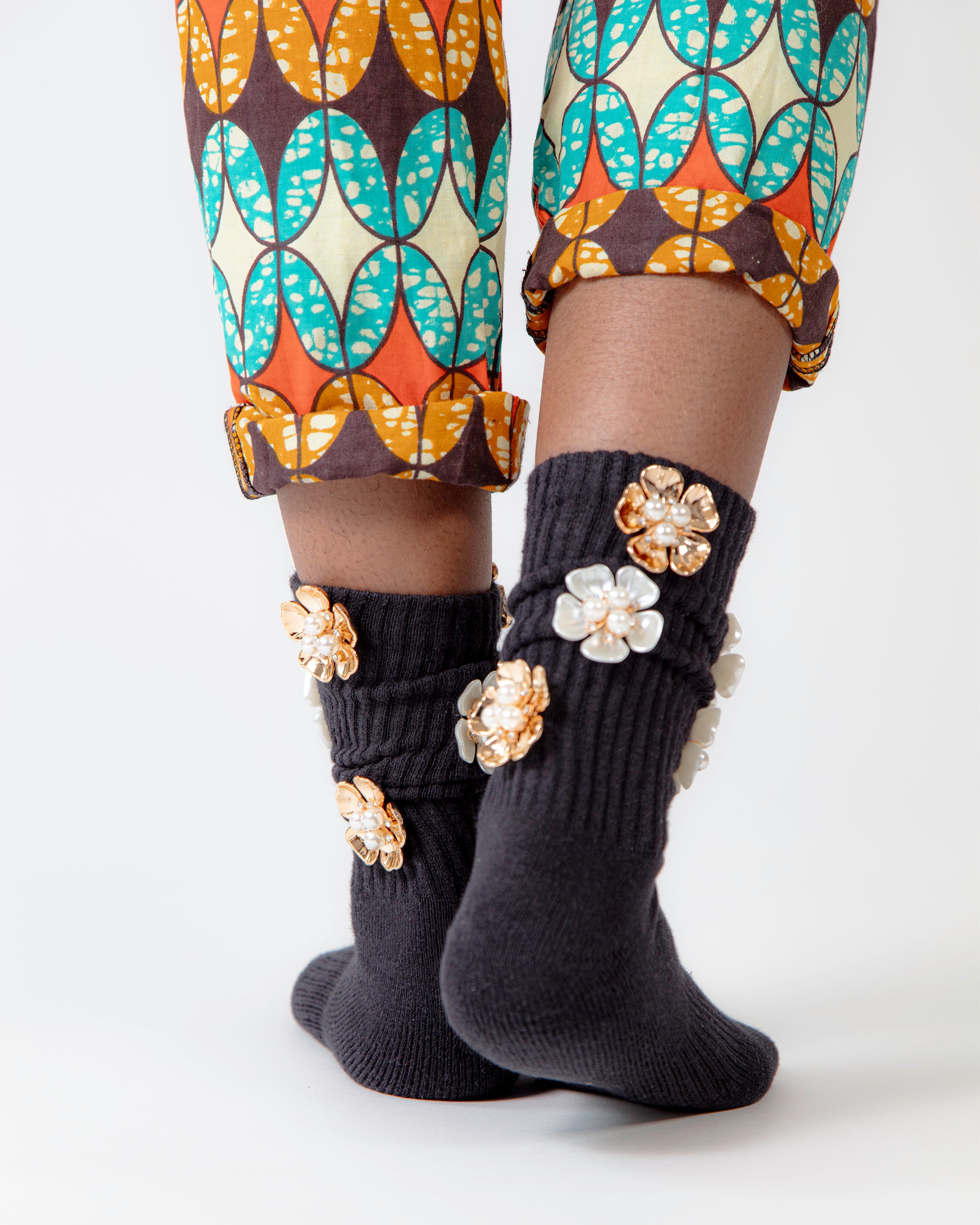 In order to protect the intricate and delicate appliqué, we suggest washing your socks inside out in the mesh bag provided.