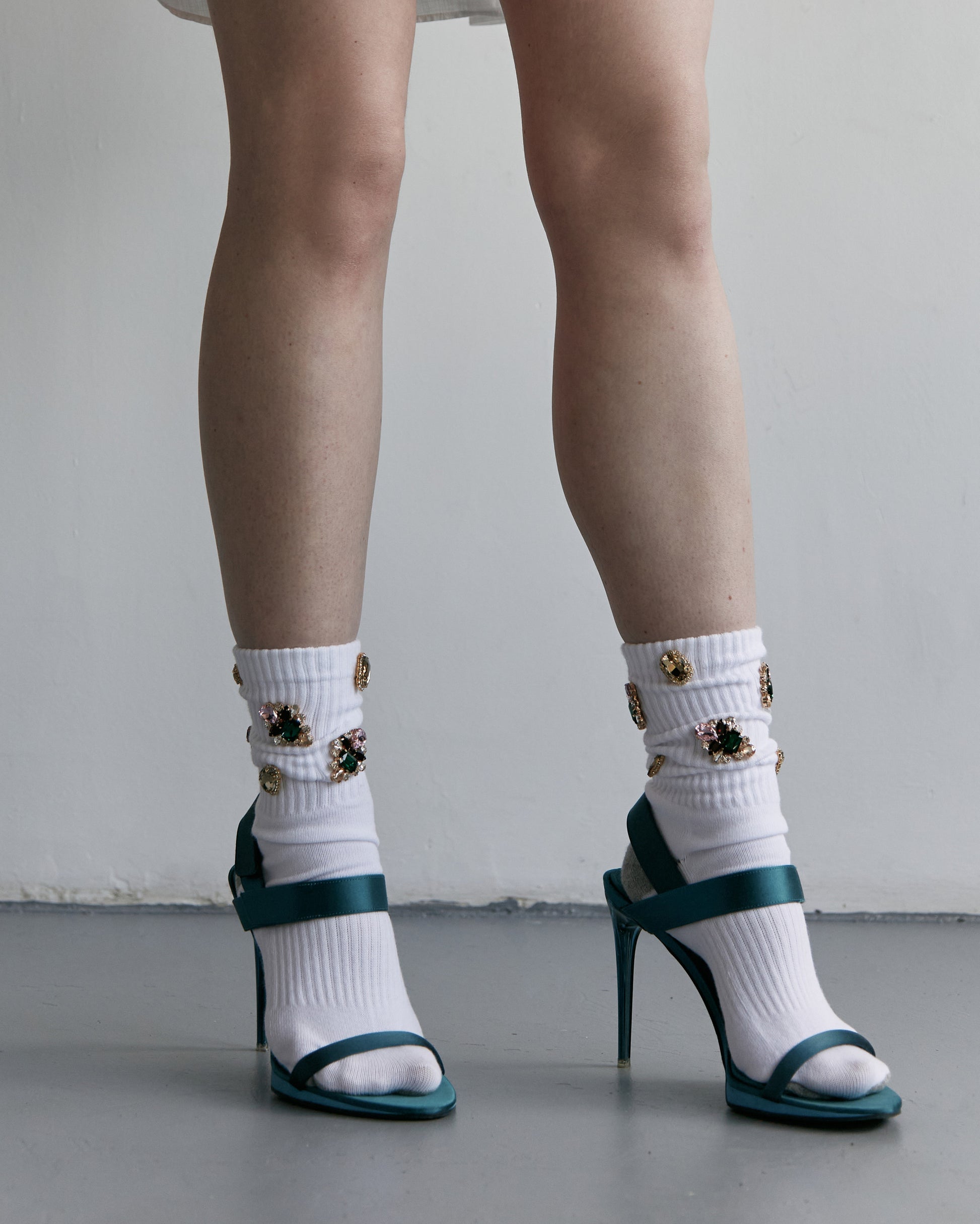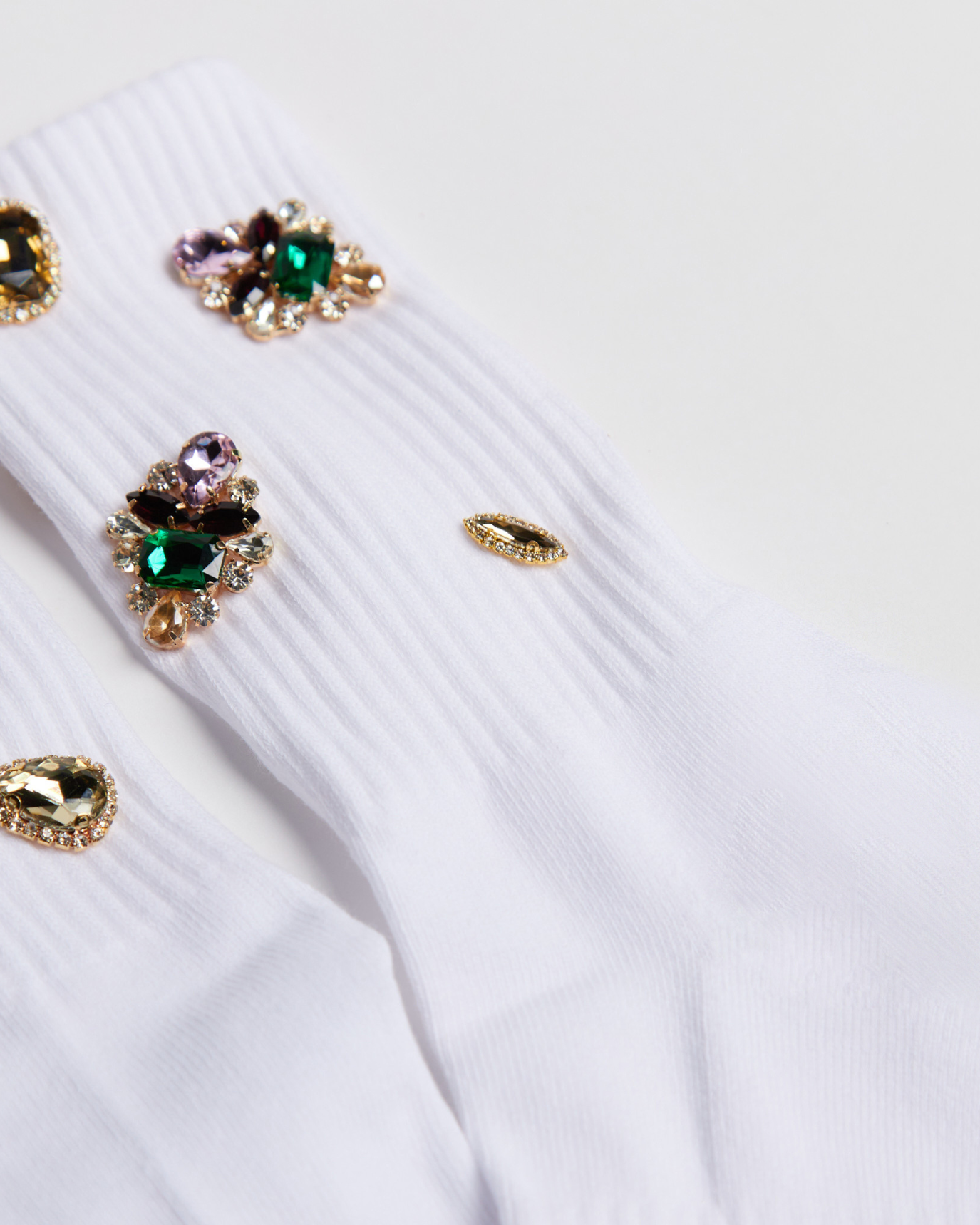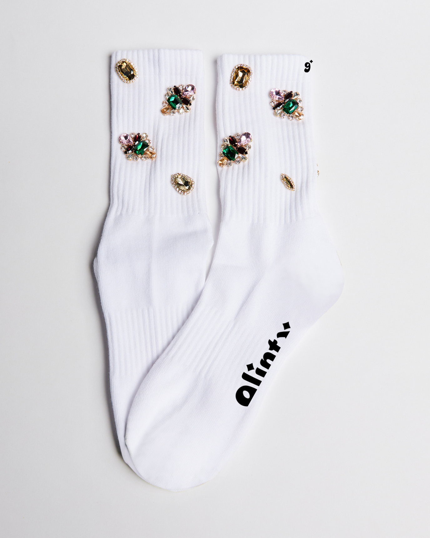 In order to protect the intricate and delicate appliqué, we suggest washing your socks inside out in the mesh bag provided.