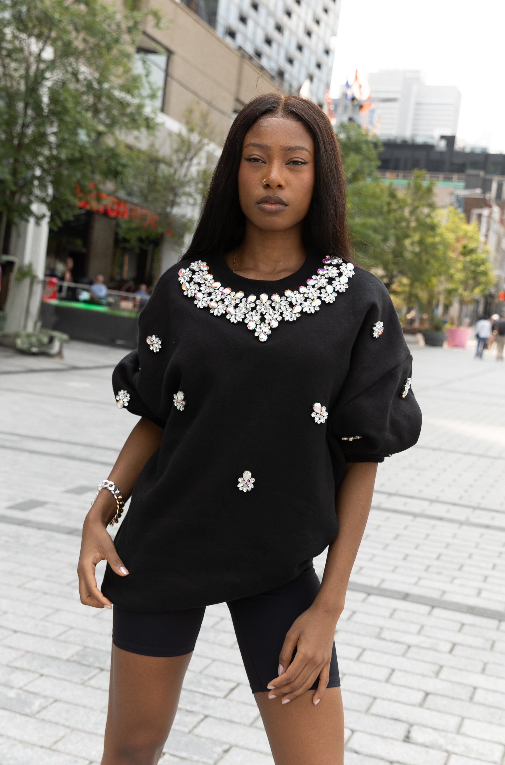 The Aurora Blossom Crystal adds timeless elegance to this sweat. This exquisite piece features a captivating, pear-shaped crystal at its center, with an Aurora Borealis finish that radiates a spectrum of vibrant hues with every movement. Surrounding it are meticulously arranged marquises and round-cut clear crystals, creating a delicate floral pattern that evokes the beauty of the night sky on…
